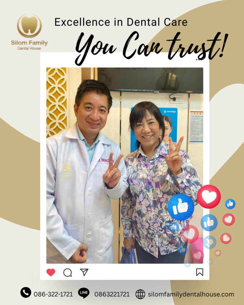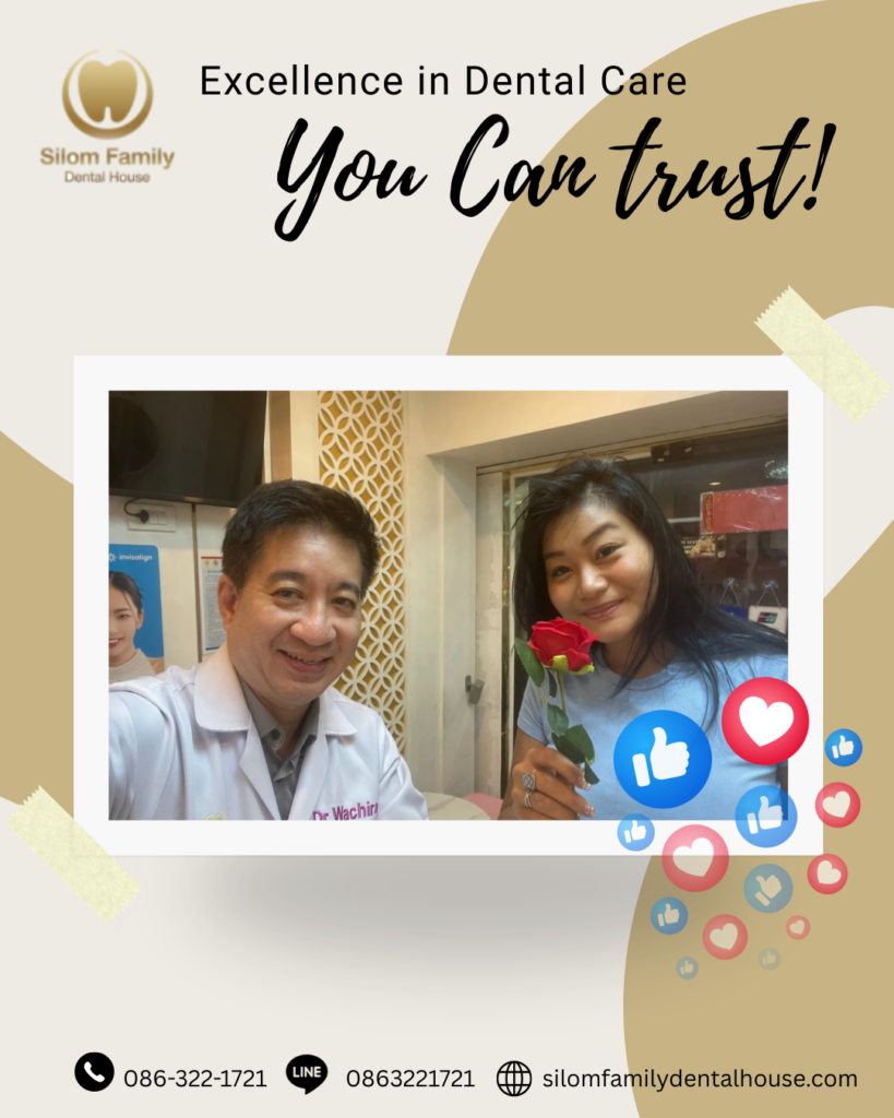 Silom Family Dental House is a dental clinic dedicated to providing comprehensive oral health care. Our services include tooth extraction, fillings, wisdom tooth surgery, root canal treatment, dental implants, orthodontics—both traditional braces and Invisalign—as well as many other treatments. With experienced specialists and modern, internationally standardized equipment, we welcome both local and international patients who seek treatment and consultation. We are committed to caring for every smile with dedication and professionalism.