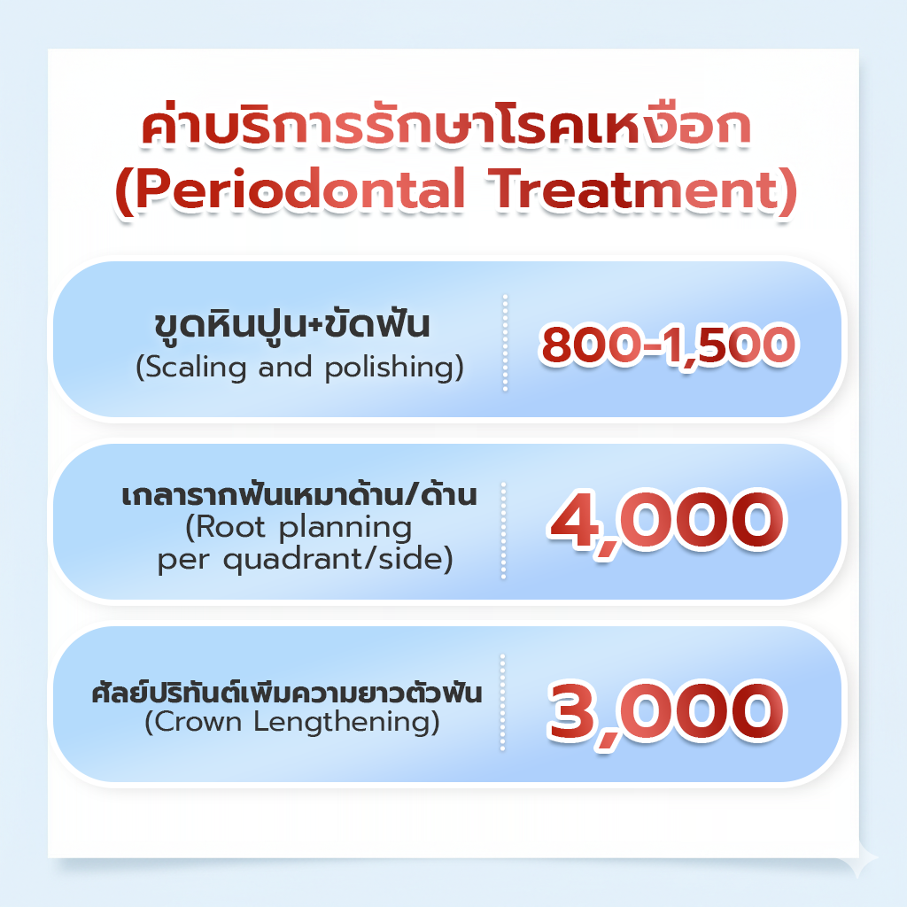 หมายเหตุ ค่าบริการทางทันตกรรมอื่นๆ ให้สอบถามจากเจ้าหน้าที่หรือ ทันตแพทย์ที่ให้บริการก่อนรับบริการทุกครั้ง